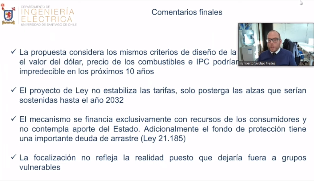 Humberto Verdejo, ingeniero civil eléctrico y académico de la U. de Santiago, participó en sesión de la Comisión de Minería y Energía de la Cámara de Diputados para presentar su punto de vista sobre esta iniciativa del Gobierno.
