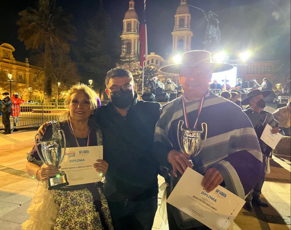 La pareja compuesta por María Ximena Cabezas y Marcos Cáceres fueron quienes se llevaron el mayor premio al coronarse campeones de la edición 2022 del Campeonato Comunal de Cueca, pero el podio no termina ahí, pues fueron Alejandra Poblete y Custodio Tapia; Angélica Maturana y José Muñoz, quienes obtuvieron el segundo y tercer lugar de manera respectiva.
