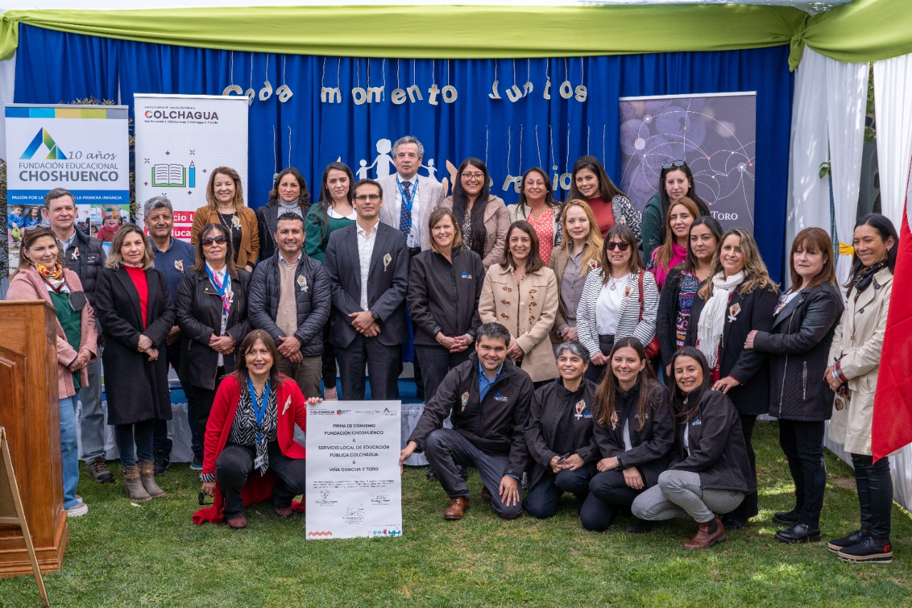 Un importante convenio destinado a establecer caminos de colaboración que favorecerán el desarrollo de la educación parvularia, suscribieron el Servicio Local de Educación Pública (SLEP) Colchagua y la Fundación Educacional Choshuenco, iniciativa enmarcada en el Programa de Transferencia Pedagógica de esta fundación, financiado por Viña Concha y Toro, donde participarán los equipos educativos de los jardines infantiles y salas cuna del territorio de Colchagua.