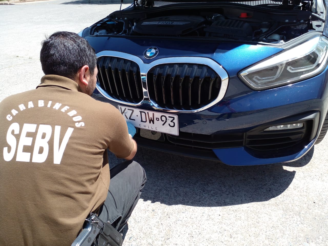 Tras diligencias propias de esta especialidad, carabineros logra recuperar el automóvil marca BMW, color azul, año 2021, quien portaba Placas Patentes Únicas falsas.