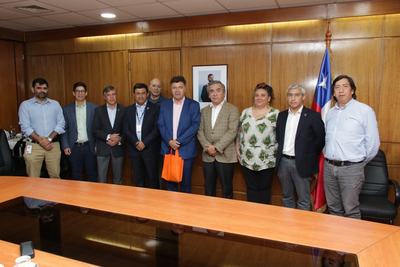 Con el propósito de diseñar en conjunto planes de educación técnica del área agrícola que satisfagan las necesidades del mercado y de las y los estudiantes de la región de O’Higgins, el ministro de Agricultura, Esteban Valenzuela, junto al subsecretario, José Guajardo Reyes, recibieron al rector del Centro de Formación Técnica (CFT) estatal de la Región de O’Higgins, Octaviano Torres; su director académico, Edison Díaz y el subdirector de Planificación y Desarrollo Institucional, Luis Olguín.