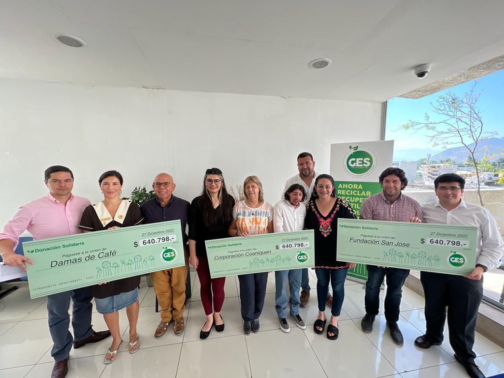 Este día martes, en una jornada de camaradería les fueron entregados a las fundaciones Damas de Café, Coaniquem y San José un aporte económico, que se genera de la recolección de residuos que aportan los puntos limpios del programa “Eco Escuelas Públicas” y que es entregada a través de la responsabilidad social empresarial por parte de la empresa que se encarga de la gestión de residuos.