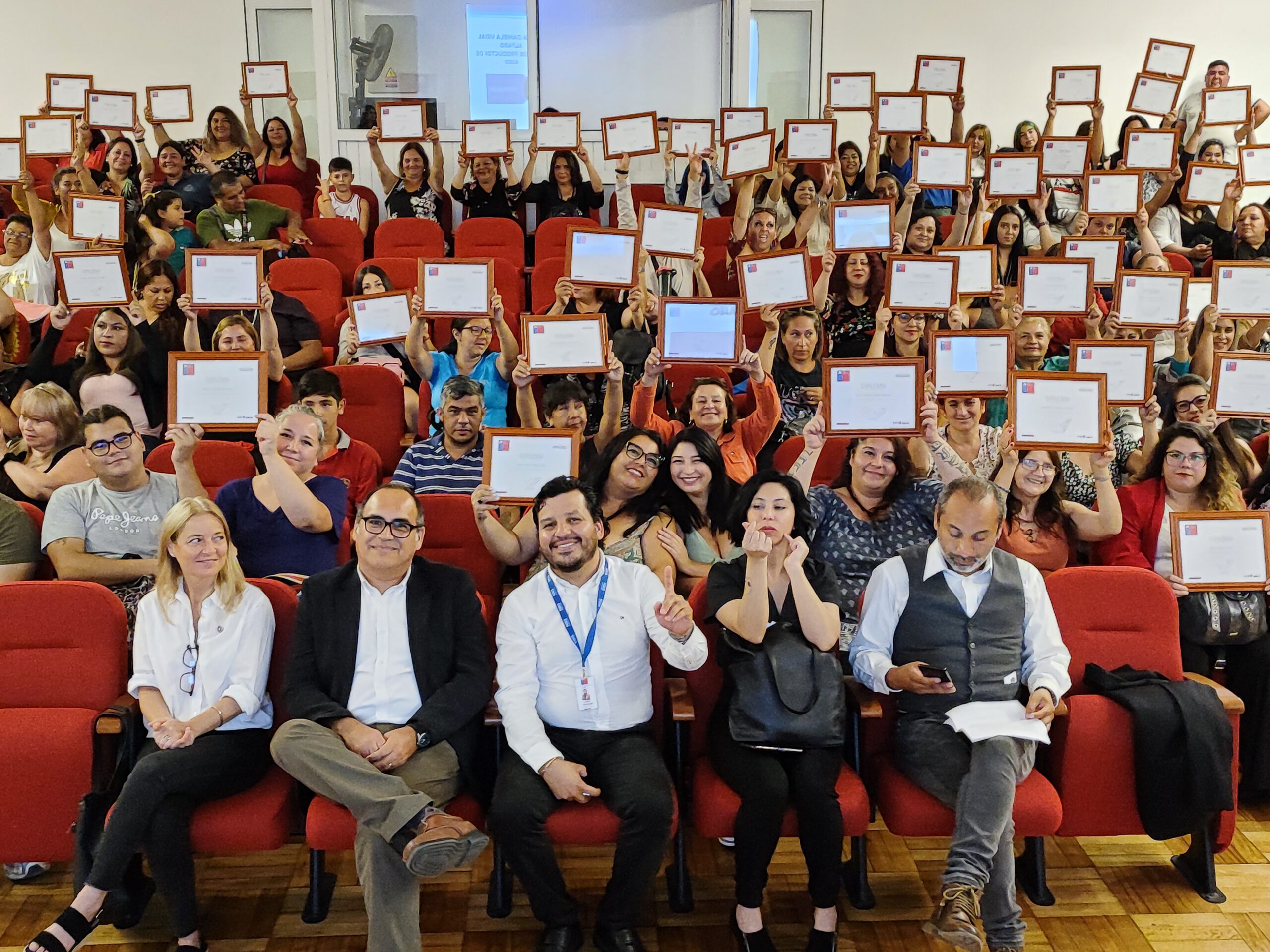 Con sus rostros alegres y en un ambiente familiar 157 usuarias y usuarios de FOSIS participaron de la ceremonia de cierre de los programas Emprendamos para la compra de maquinarias, herramientas, insumos y/o mejoramiento de espacios de trabajo de sus emprendimientos.