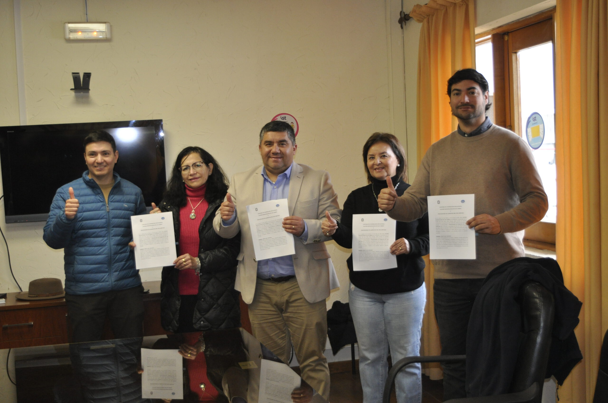 La firma del acuerdo fue realizada en dependencias de la municipalidad y contó con la presencia del alcalde de la comuna, Juan Pablo Flores; la jefa del DAEM, Amanda Plaza; y el jefe de Relaciones con la Comunidad Zona Costa de Agrosuper, Agustín Villalobos.