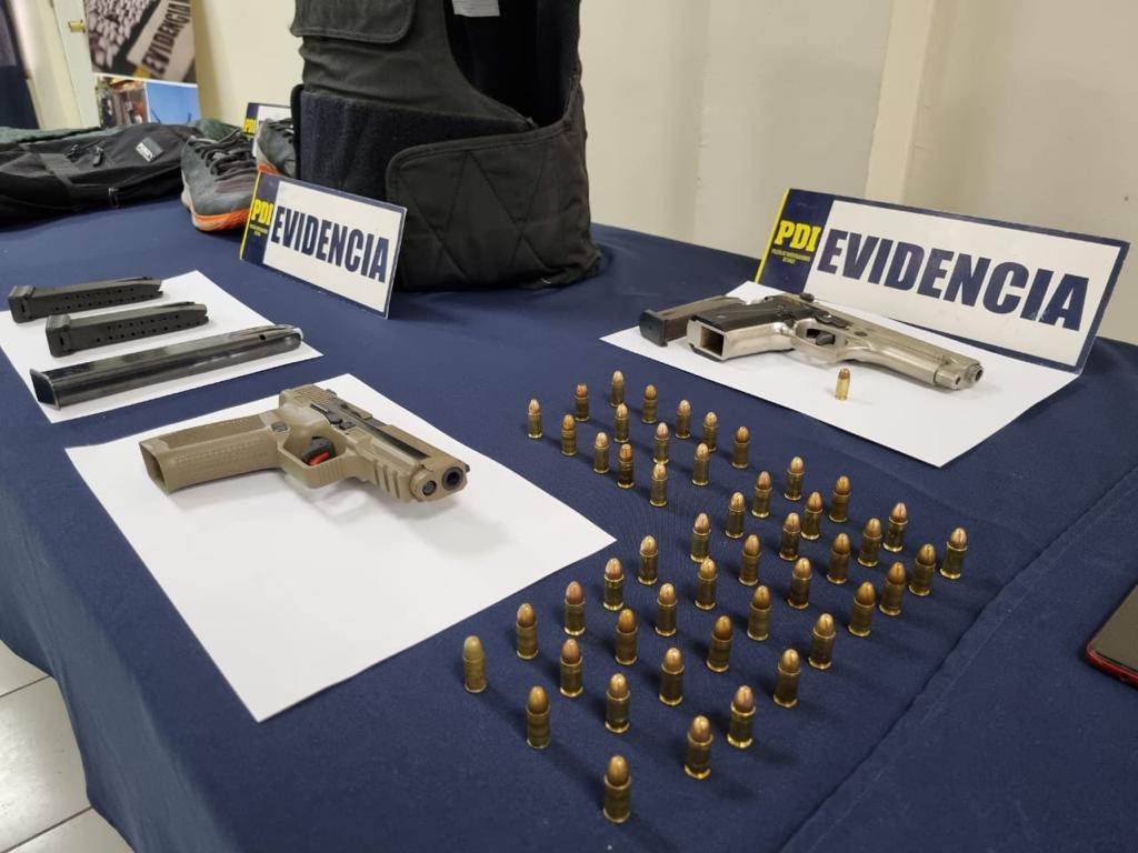Según informaron desde la policía civil, durante el procedimiento fueron encontradas vestimentas asociadas al ilícito investigado, dos pistolas, munición de diverso calibre y un chaleco antibalas, motivo por el que también fue detenida una mujer de 24 años de edad, por infracción a la Ley de Armas.