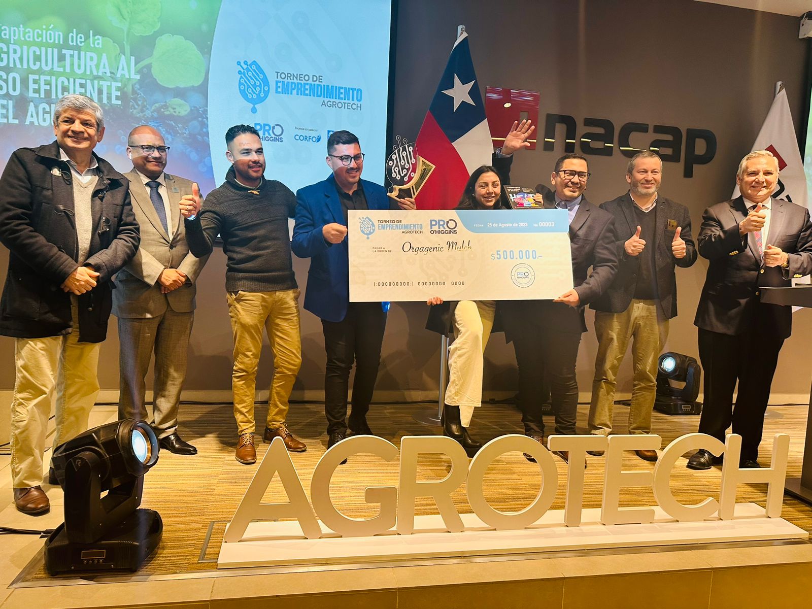 El proyecto OrgaGenic Mulch perteneciente a un equipo de estudiantes de Inacap sede Rancagua, obtuvo el primer lugar en el Torneo de Emprendimiento Agrotech ejecutado por Corporación Pro O’Higgins con el cofinanciamiento de Corfo a través del instrumento Viraliza.