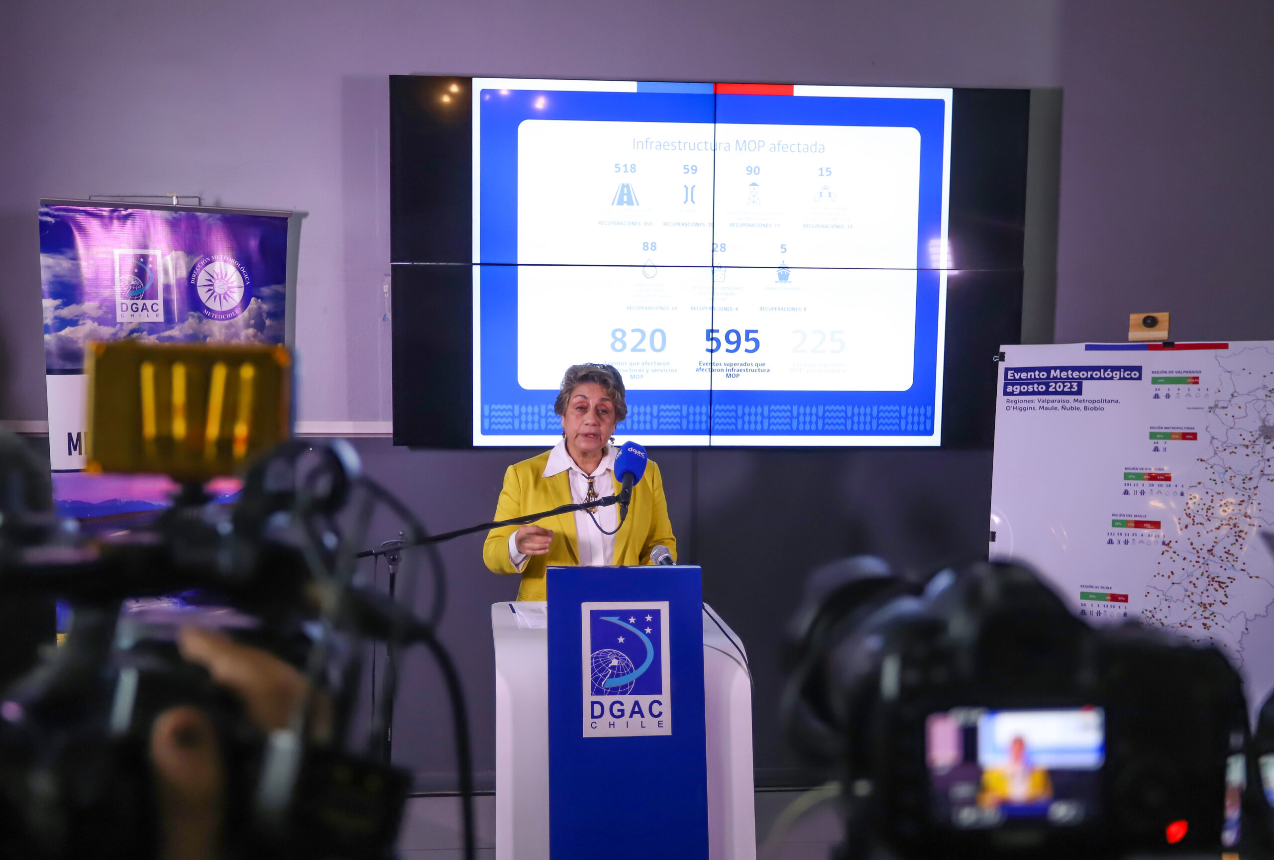 Respecto de otras infraestructuras afectadas, la ministra López indicó que tuvieron problemas 90 Servicios Sanitarios Rurales, de los cuales se han podido recuperar 73; 15 servicios de agua potable urbana que ya están completamente reestablecidos; 88 obras de riego, de las cuales se han recuperado 14; 28 estaciones de monitoreo de la Dirección General de Aguas, de las que se han logrado reponer 4, y 5 obras portuarias que no han sido recuperadas.