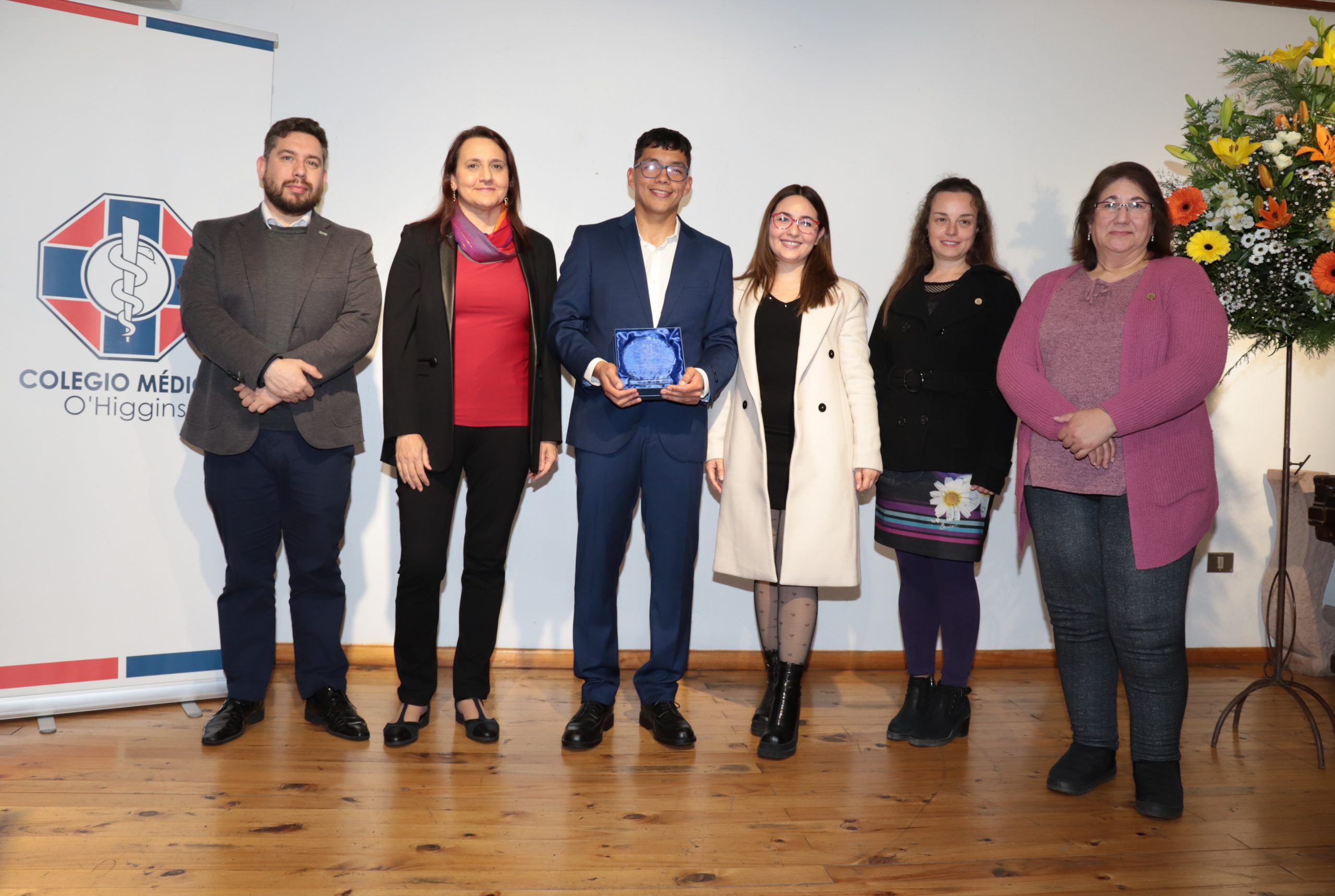 La Dra. Leslie Salvatierra, presidenta del Colegio Médico O’Higgins, explicó que “tradicionalmente celebramos a los colegiados que cumplen 50 años de trayectoria y, además, como Consejo Regional, premiamos y celebramos a aquellos médicos destacados en otras actividades, más allá de las clínicas o quirúrgicas. Como este año, en particular, la UOH tiene la promoción de sus primeros egresados de la carrera de Medicina, quisimos premiar al mejor alumno de esta primera generación”.