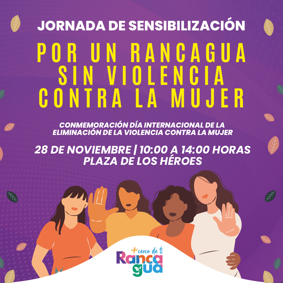 En este contexto, la Municipalidad de Rancagua realizará, este martes 28 de noviembre, la Jornada de Sensibilización ‘Por un Rancagua sin Violencia contra la Mujer’, en un compromiso del alcalde Juan Ramón Godoy y el Concejo Municipal de apoyar a las rancagüinas que sufren algún tipo de violencia de género.