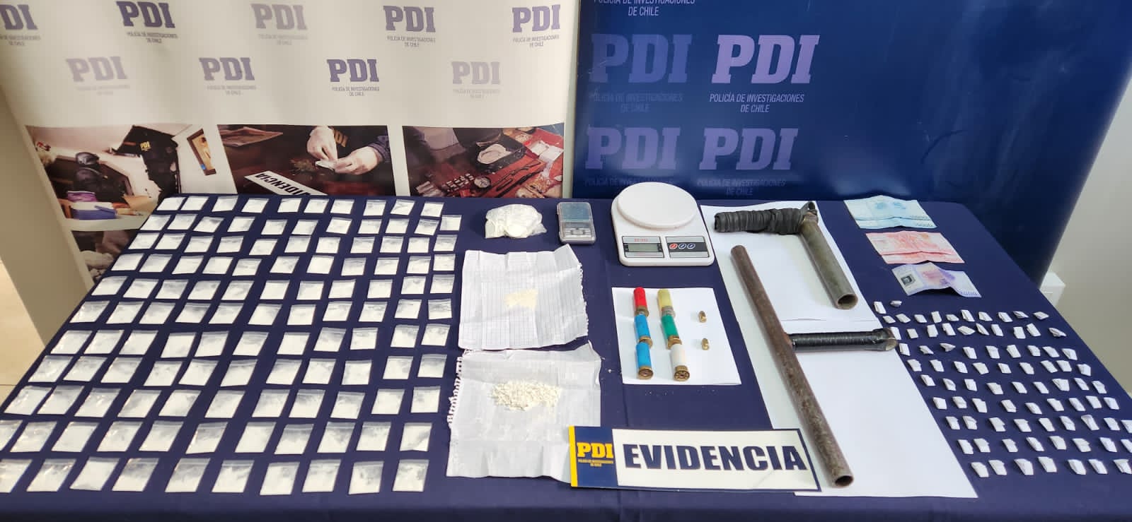 De igual manera, la PDI señaló que también incautó 10,8 gramos de Ketamina, 60 comprimidos de Clonazepam y 14 comprimidos de MDMA, además de una prensa hidráulica para compactar droga, elementos para la dosificación de sustancias ilícitas, fuegos artificiales y 71 mil pesos, aparentemente obtenidos de la venta de estupefacientes.