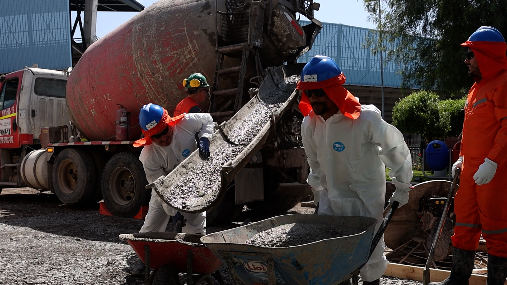 La idea evolucionó desde el papel hasta el uso efectivo en la fabricación de hormigón con el apoyo de la Dirección de Innovación de El Teniente y los conocimientos técnicos de los especialistas del laboratorio IDIEM (Investigación, Desarrollo e Innovación de Estructuras y Materiales) de la Universidad de Chile.
