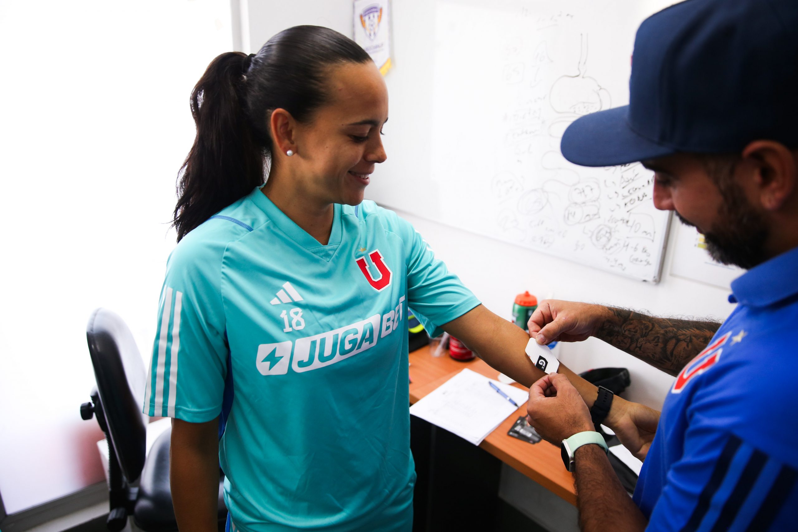 Una vez instalado el parche, las futbolistas realizan su entrenamiento habitual y pueden hidratarse con agua o Gatorade. “Esto también sirve para poder cuantificar dentro de las preferencias si están siendo capaces de consumir la cantidad de hidratos de carbono que se recomienda para este tipo de entrenamiento”, aclaró el doctor Cancino.