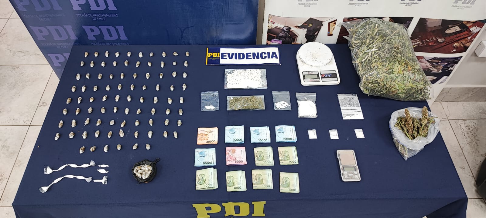 Una vez que la PDI tuvo el decreto judicial en su poder, montó un operativo policial para irrumpir en los inmuebles, lo que permitió incautar 61 gramos clorhidrato de cocaína, 24 gramos cocaína base, 689 gramos de y una planta de la misma especie, droga avaluada en 5,6 millones de pesos.