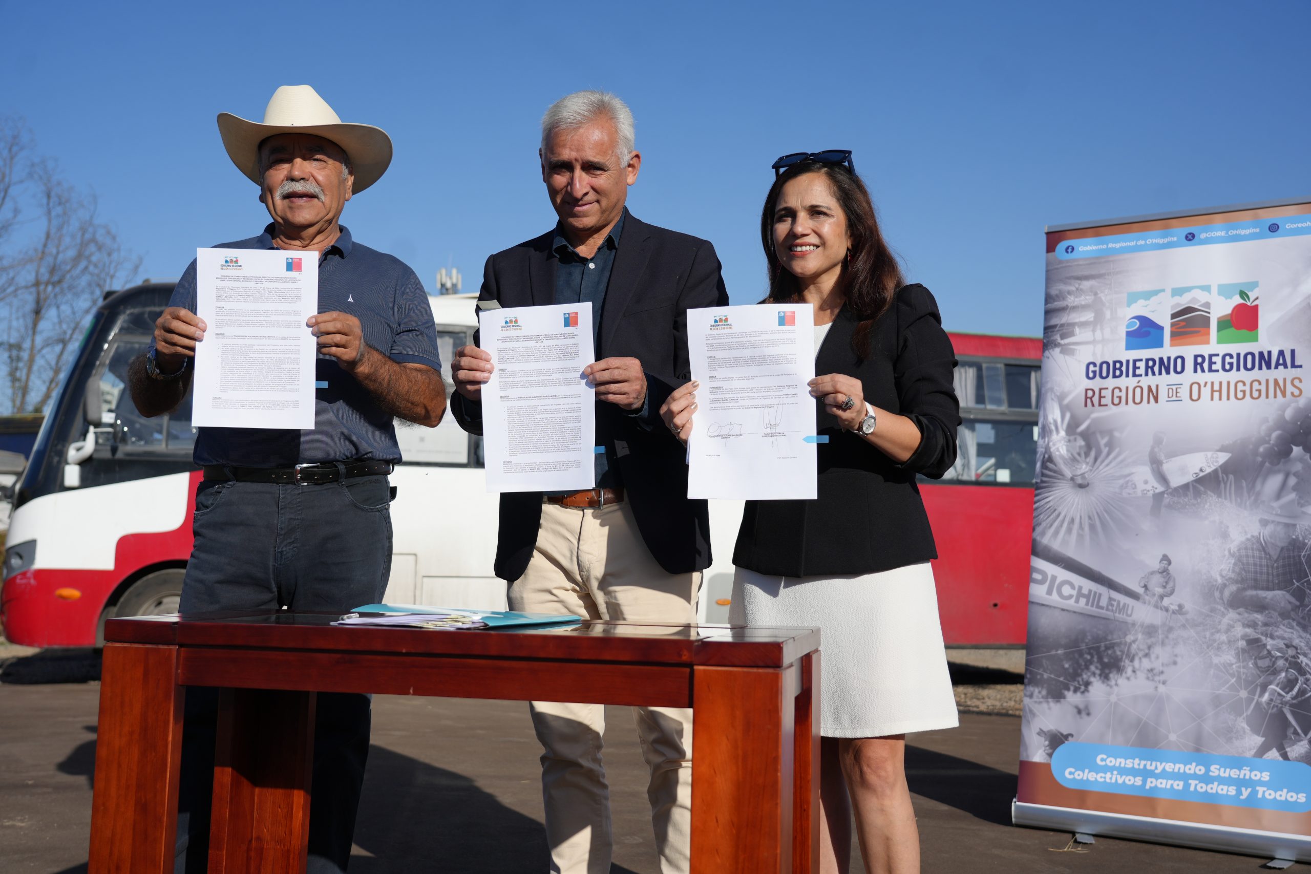 Una flota de 10 modernos buses eléctricos reforzarán el transporte público de Rancagua, esto gracias un esfuerzo conjunto entre el Gobierno Regional y un privado. Por lo mismo, este jueves el Gobernador Regional Pablo Silva Amaya y un representante de la empresa Transportes Alejandro Ibáñez Ltda. sellaron el convenio que permitirá la renovación de estas máquinas.