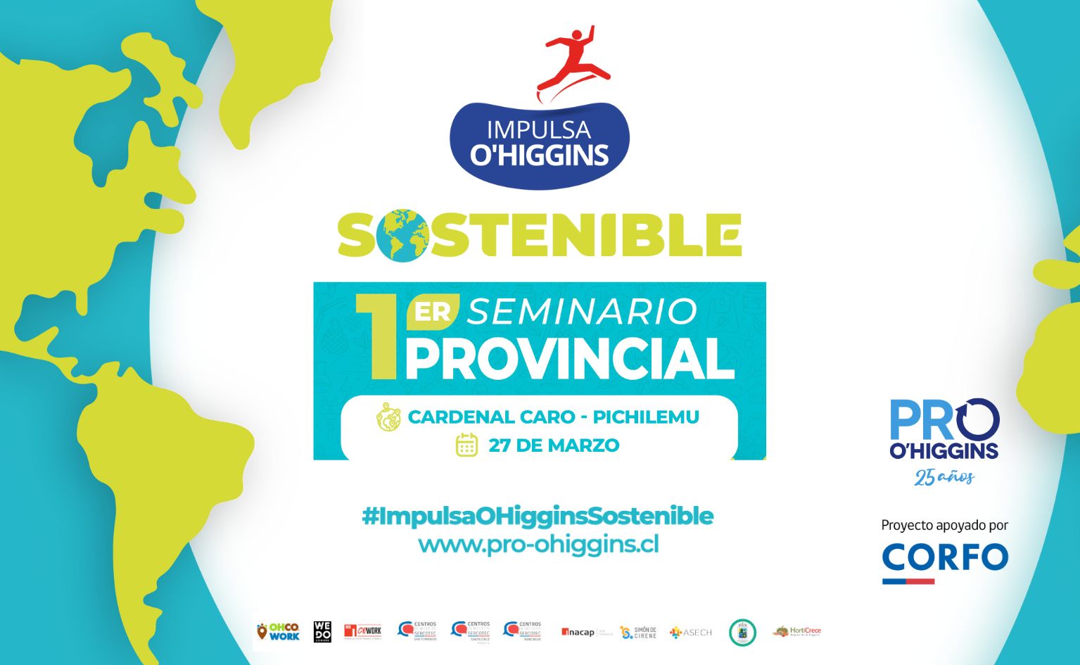 El miércoles 27 de marzo, a las 9 hrs en el auditorio de la municipalidad de Pichilemu, se da inicio al primer seminario provincial del programa Impulsa O’Higgins Sostenible orientado a emprendedores y demás personas interesadas en las temáticas de innovación y sostenibilidad de la provincia de Cardenal Caro.