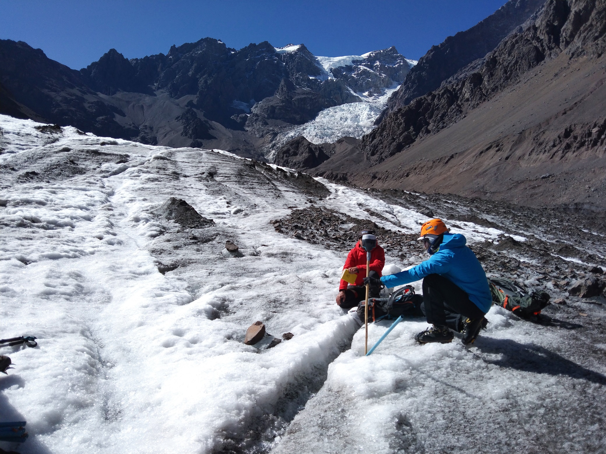 El trabajo de la Universidad iniciaría en abril de este año, con labores en terreno a cargo de un equipo capacitado en alta montaña. “Vamos a ir al glaciar y lo recorreremos. La idea es colocar estacas o también denominadas balizas de ablación a lo largo del glaciar. Para eso perforaremos el hielo y colocaremos tubos de PVC, desde la parte más alta a la parte más baja. Cabe recordar que este glaciar alcanza casi los 5.000 metros en su altura máxima y 2.500 en la mínima”.