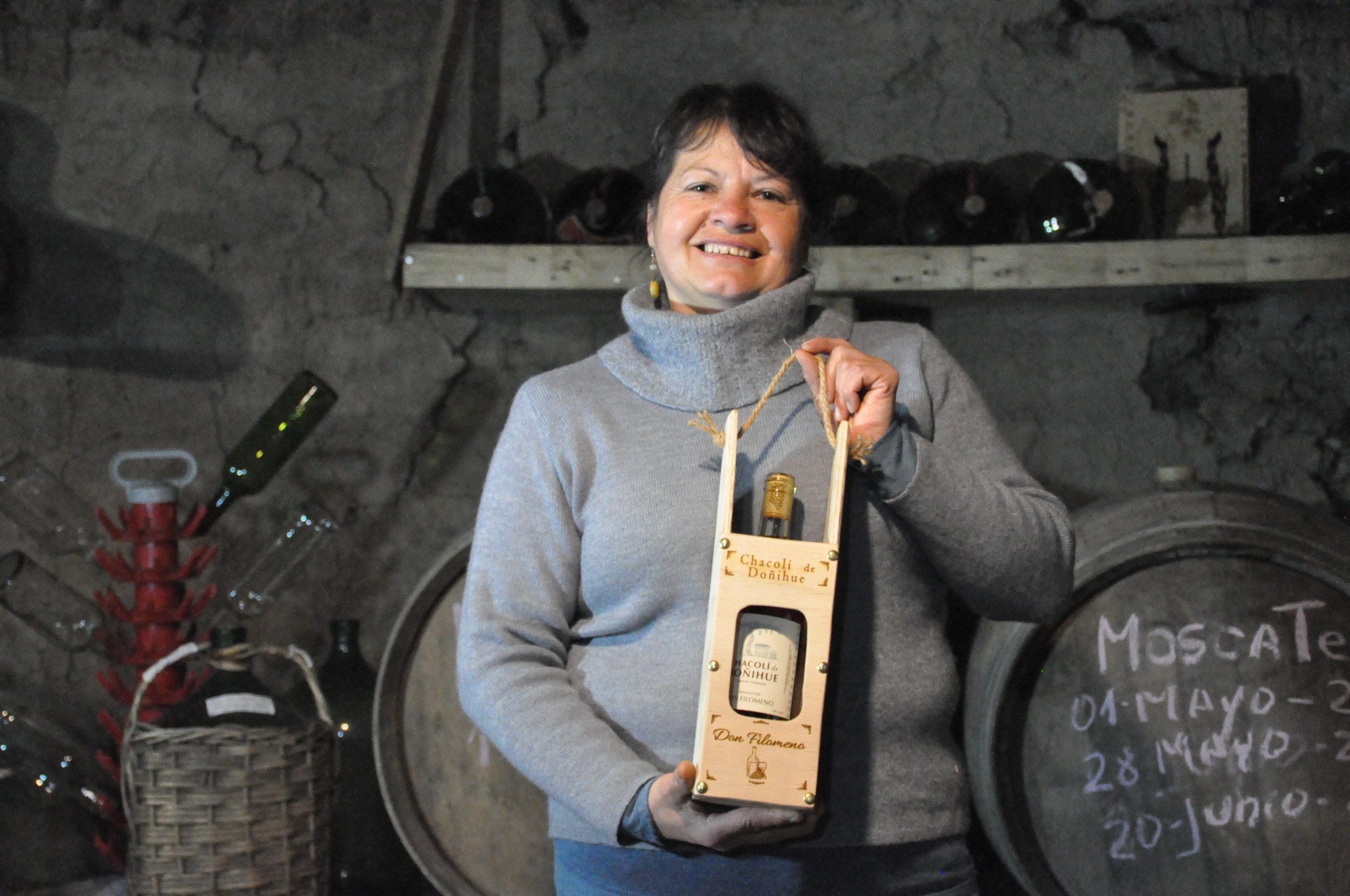 Uno de los licores más característicos de la comuna de Doñihue es el chacolí, brebaje elaborado en base a uva país y moscatel que, con un sabor característico, se ha convertido en un sello de los viñateros de la zona. Una tradición de la cual Cristina Salas (55) es partícipe gracias a un emprendimiento familiar de chacolí llamado “Don Filomeno”, negocio a través del cual conoció el programa Capital Emprendedor de Agrosuper.