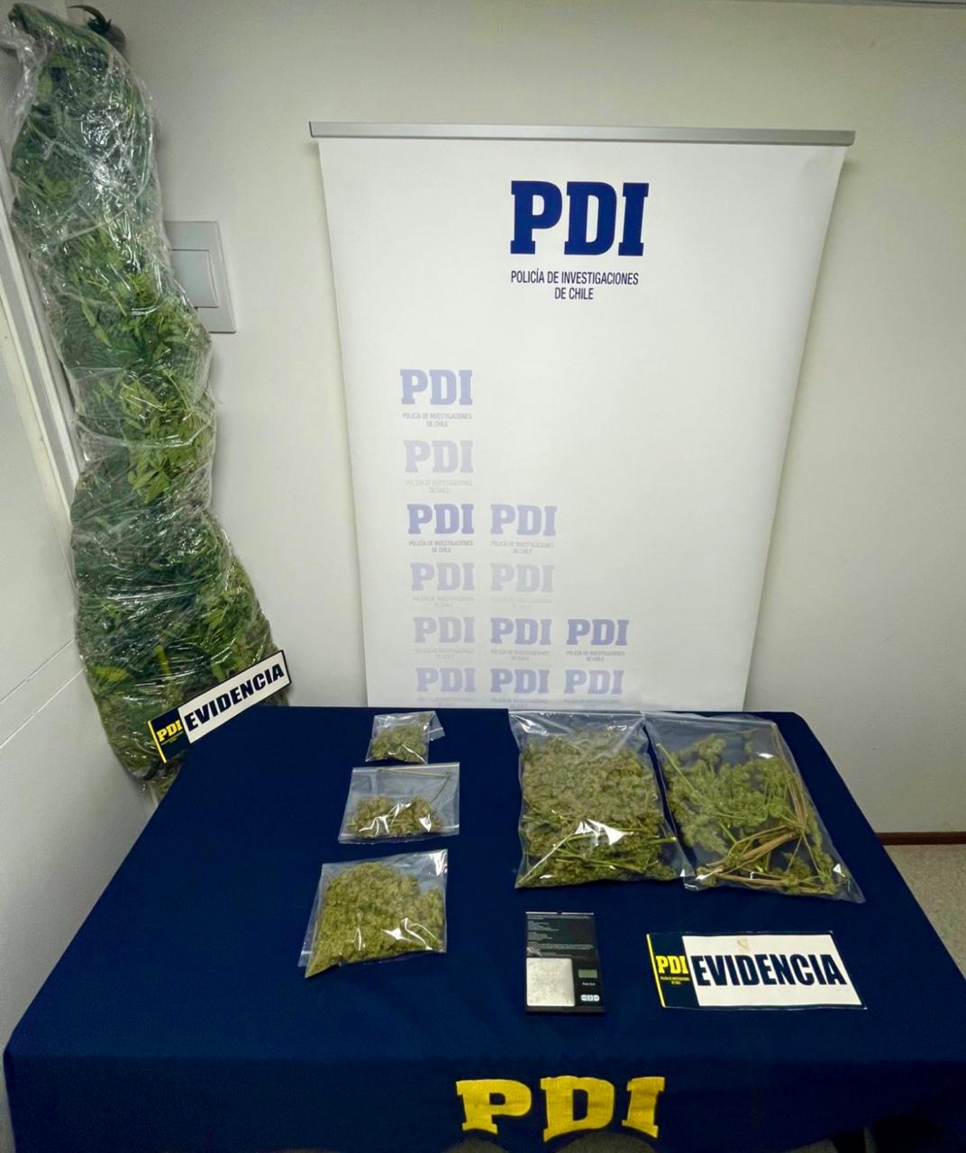 Después que el personal policial llegó al inmueble, el residente de la propiedad autorizó el ingreso voluntario de la PDI, lo que permitió el hallazgo de 796 gramos de cannabis y una planta de la misma especie, droga avaluada en 4,5 millones de pesos.