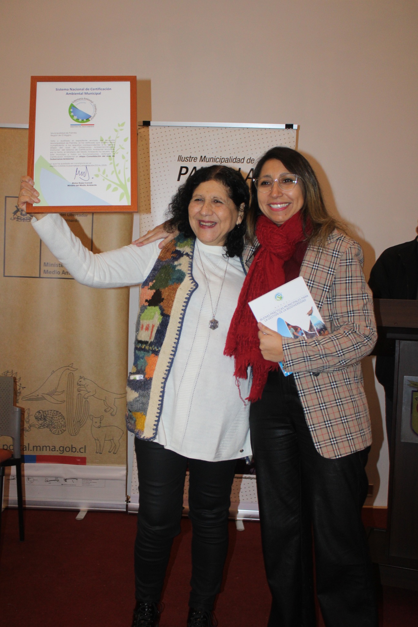 La Seremi del Medio Ambiente O’Higgins Giovanna Amaya Peña entregó al Municipio de Palmilla el máximo nivel de certificación ambiental del SCAM «Gobernanza Ambiental» y a establecimientos educacionales su certificación en nivel básico y nivel medio formando parte de la Red de Establecimientos SNCAE del Ministerio del Medio Ambiente.