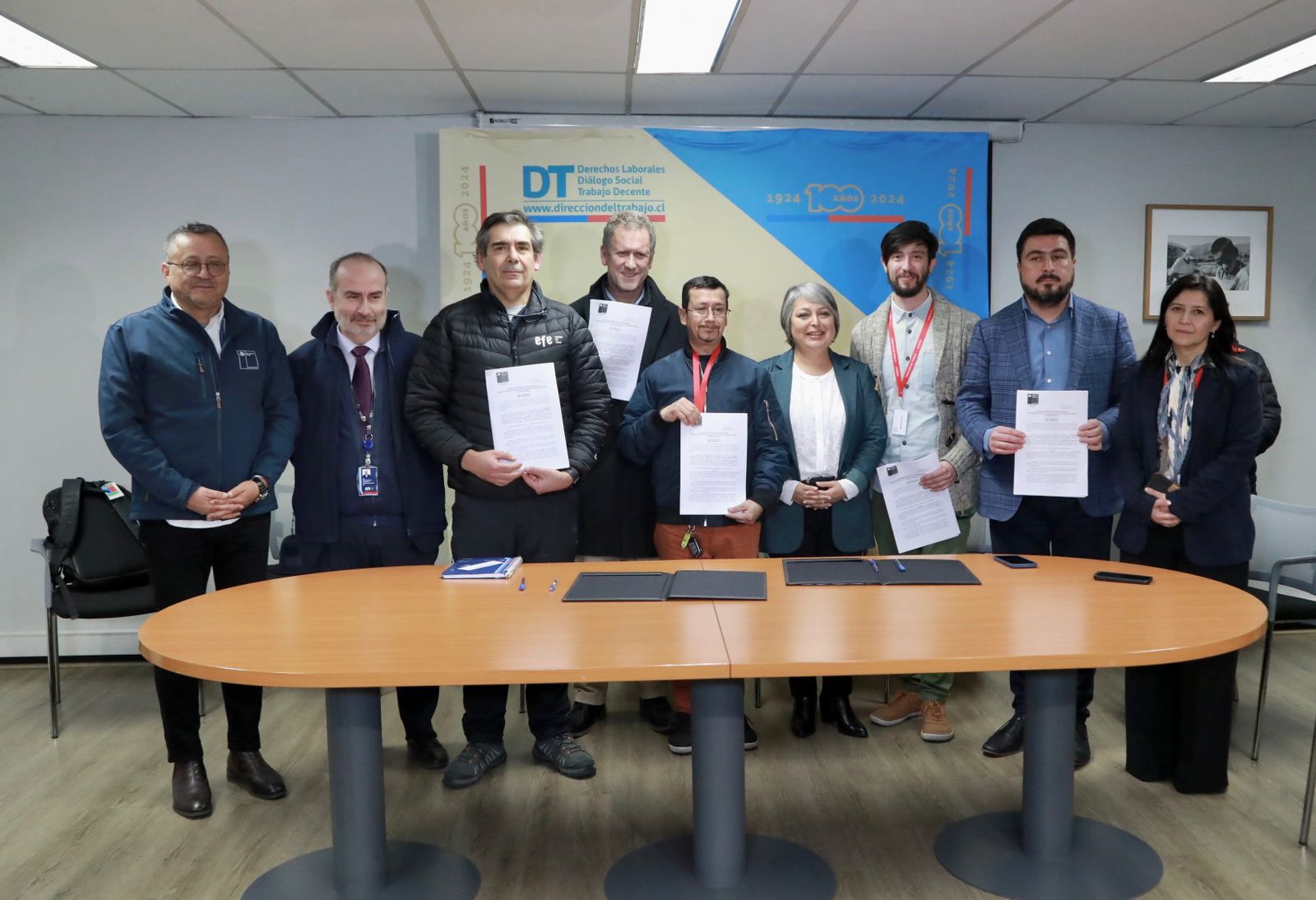 La suscripción del acuerdo se realizó en la sede de la Dirección Nacional del Trabajo y contó con la presencia de la ministra del Trabajo y Previsión Social, Jeanette Jara; del ministro de Transporte y Telecomunicaciones, Juan Carlos Muñoz, y del director del Trabajo, Pablo Zenteno, así como de las dirigencias sindicales, los equipos gerenciales de EFE Trenes de Chile y del equipo mediador perteneciente al Departamento de Relaciones Laborales de la Dirección del Trabajo.