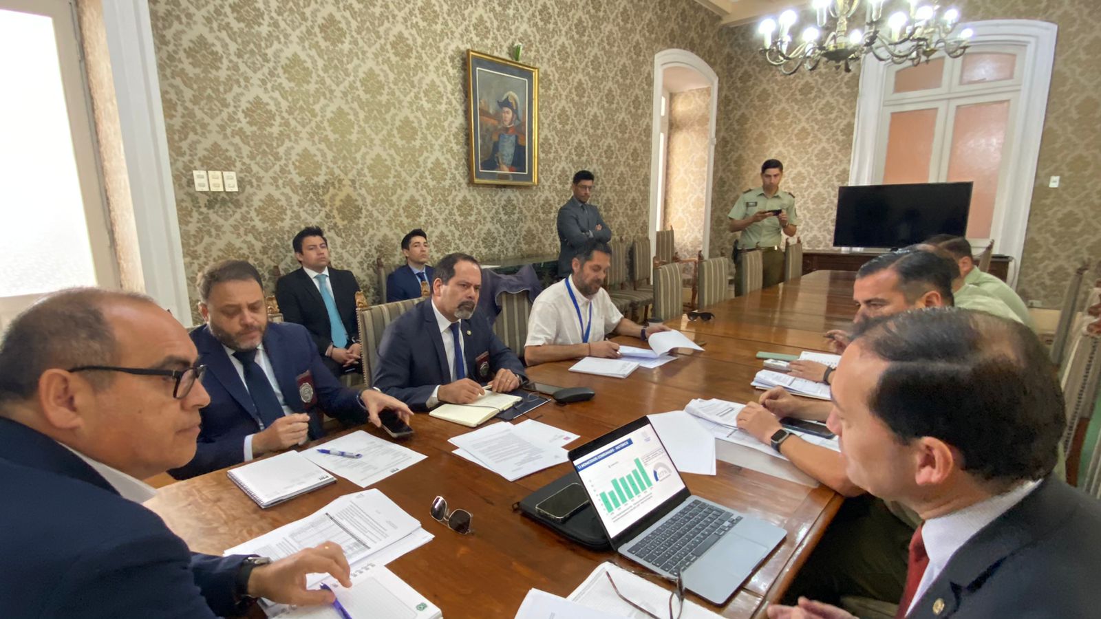 En una reunión clave para la seguridad de la región de O’Higgins, el Delegado Presidencial Regional, Fabio López Aguilera, se reunió con el Fiscal Regional, Aquiles Cubillos; el Director Regional de la Policía de Investigaciones (PDI), Julio Caro; y el Prefecto de Carabineros, Nibaldo Sánchez.