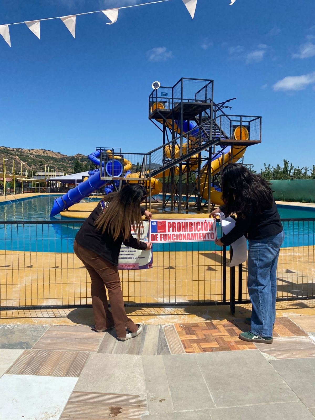 En el contexto del Programa de Fiscalización de piscinas que realiza la Seremi de Salud O´Higgins en medio de la época estival, en la comuna de Palmilla se realizó una inspección a un parque acuático que terminó en una prohibición de funcionamiento por incumplimiento de medidas sanitarias que presentaba el lugar.