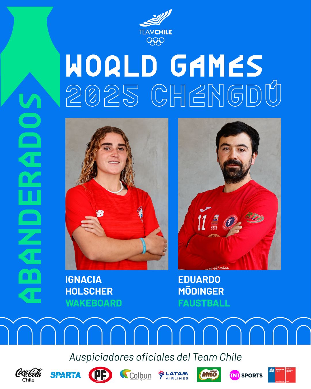 La wakeboardista Ignacia Holscher y el faustbalista Eduardo Mödinger fueron elegidos abanderados del Team Chile para los Juegos Mundiales de Chengdú 2025 (China, 7-17 de agosto), el evento deportivo más importante del mundo para las disciplinas que no forman parte del programa olímpico.