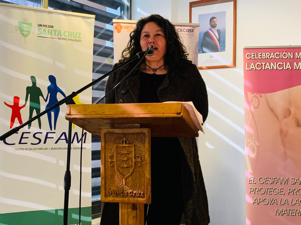 Desde el ámbito local de salud, la directora del Cesfam Santa Cruz, Mary Luz Bozo, explicó que este evento fue el cierre de una serie de actividades desarrolladas durante un mes: “Hemos estado trabajando con diversas acciones que culminan hoy con esta premiación de lactancia materna exclusiva de seis meses”.