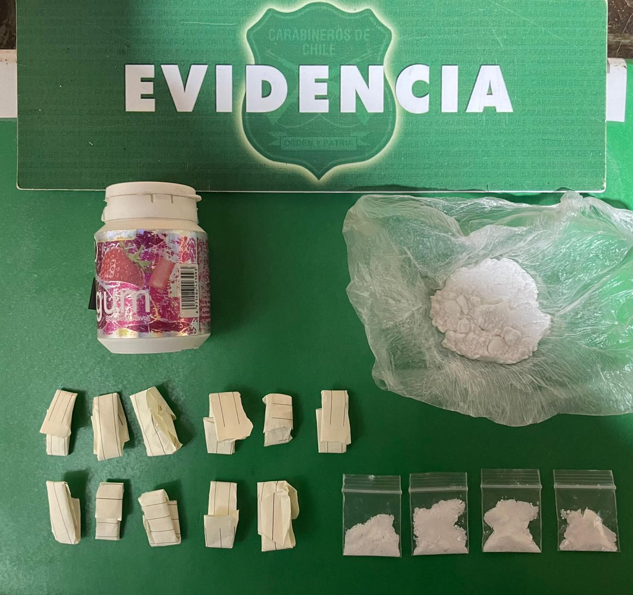 Carabineros incautó diversas dosis de clorhidrato de cocaína durante un operativo realizado en el sector Caserío de Talca. El detenido fue puesto a disposición del Juzgado de Garantía.
