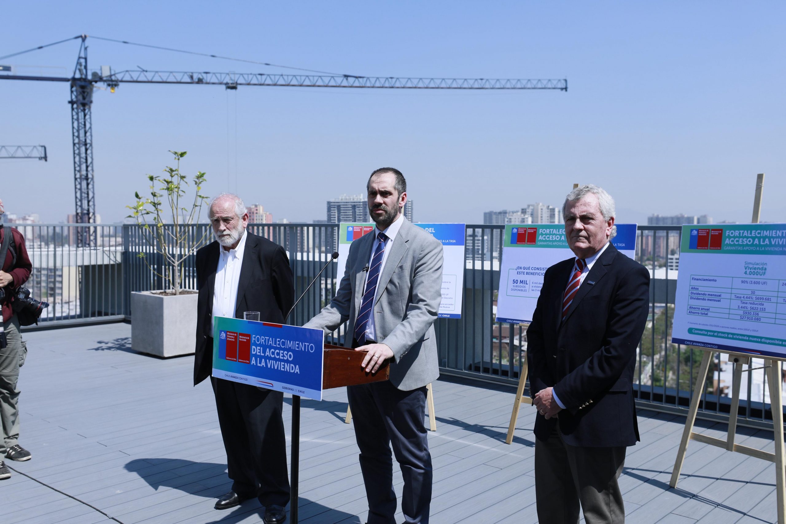 El ministro de Hacienda, Nicolás Grau, junto al ministro de Vivienda y Urbanismo, Carlos Montes, y al presidente de la Cámara Chilena de la Construcción (CChC), Alfredo Echavarría, anunciaron este medio día el adelanto de los recursos comprometidos para el Subsidio al Crédito Hipotecario. El beneficio, que aporta el Estado a través de un subsidio a la tasa de interés y una garantía fiscal al crédito, permite rebajar la tasa hipotecaria en más de un punto porcentual. Por ejemplo, la tasa hipotecaria promedio en UF hace tres meses estaba en torno a 4,4%, y actualmente algunas instituciones financieras ofrecer tasas de 3,3% para financiamientos con este subsidio y garantía.