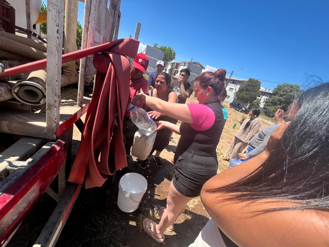 Durante la jornada, se dispusieron tres camiones aljibe para entregar agua directamente a los hogares, asegurando que los vecinos pudieran cubrir sus necesidades básicas mientras se restablecía el suministro.
