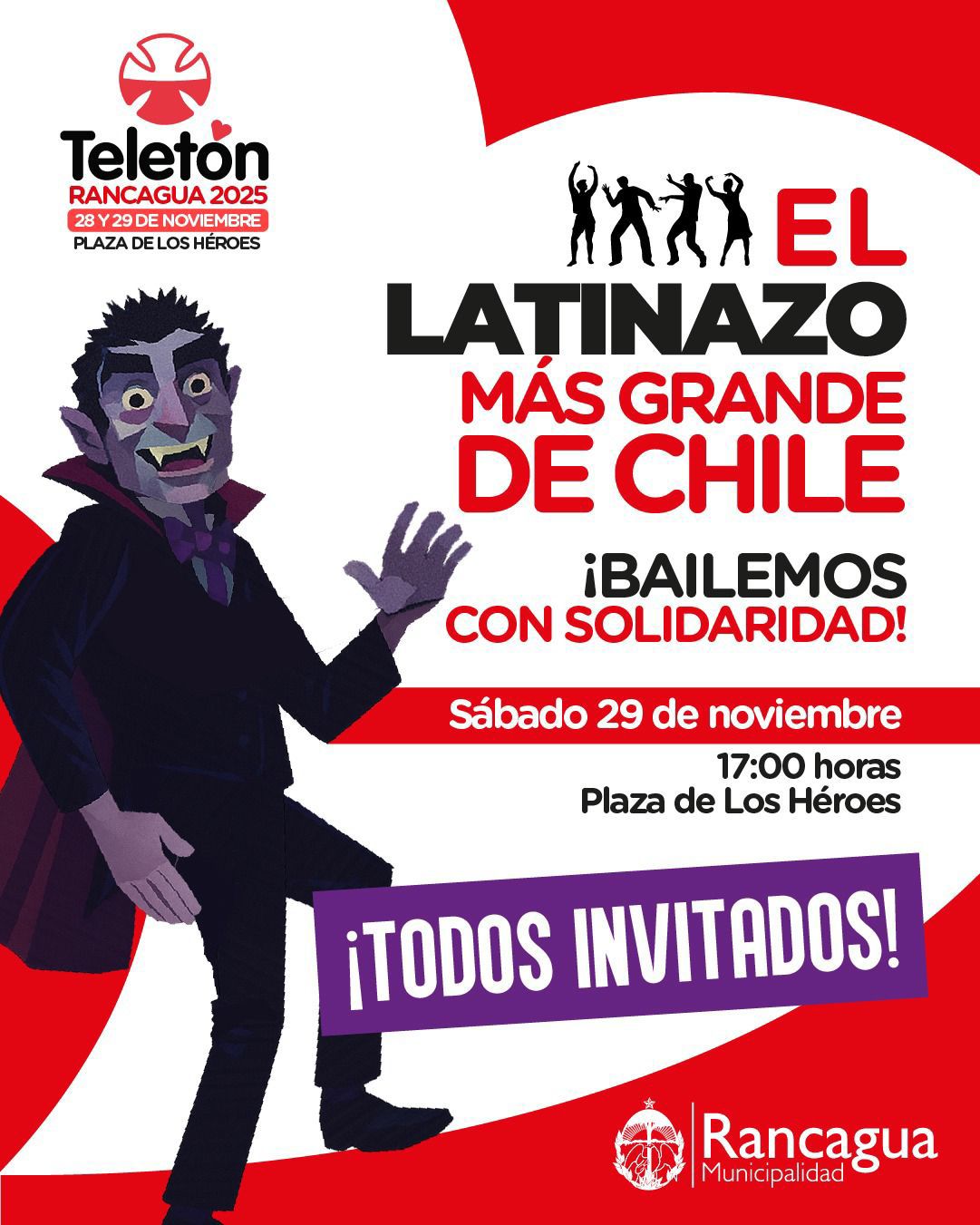 Ya lo saben, todos invitados a colaborar con la Teletón, bailando El Latino, en la Plaza de Los Héroes de Rancagua.