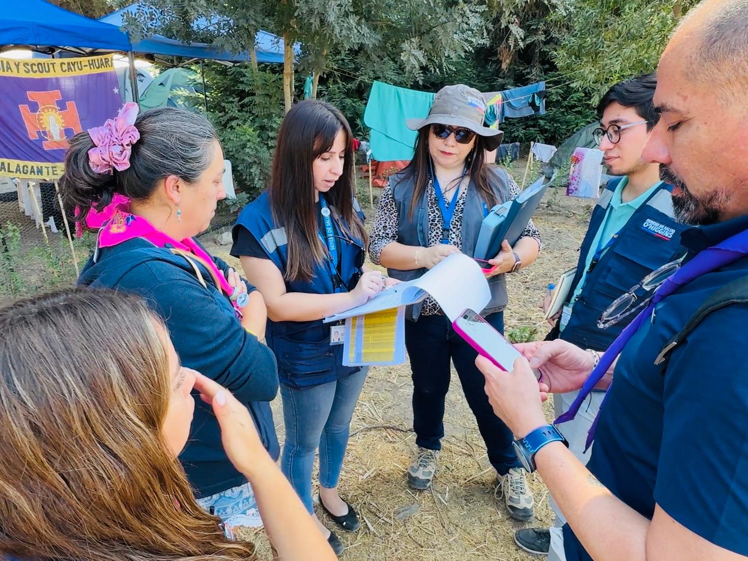 Equipos de la Seremi de Salud se trasladaron hasta el lugar para verificar las condiciones sanitarias del evento, con especial énfasis en la preparación, manipulación y almacenamiento de alimentos en el campamento, como también verificar el estado del agua.
