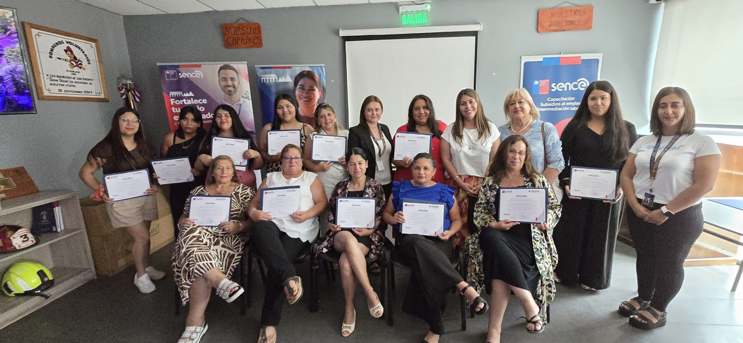 Jacqueline compartió además una noticia que ejemplifica el objetivo de estos programas: su inmediata inserción laboral. «Con orgullo puedo decir que hoy pertenezco a la Oficina del Adulto Mayor de la Municipalidad (de San Vicente) y al programa domiciliario del Ministerio de Desarrollo Social y Familia», relató con satisfacción ante sus compañeras y autoridades.