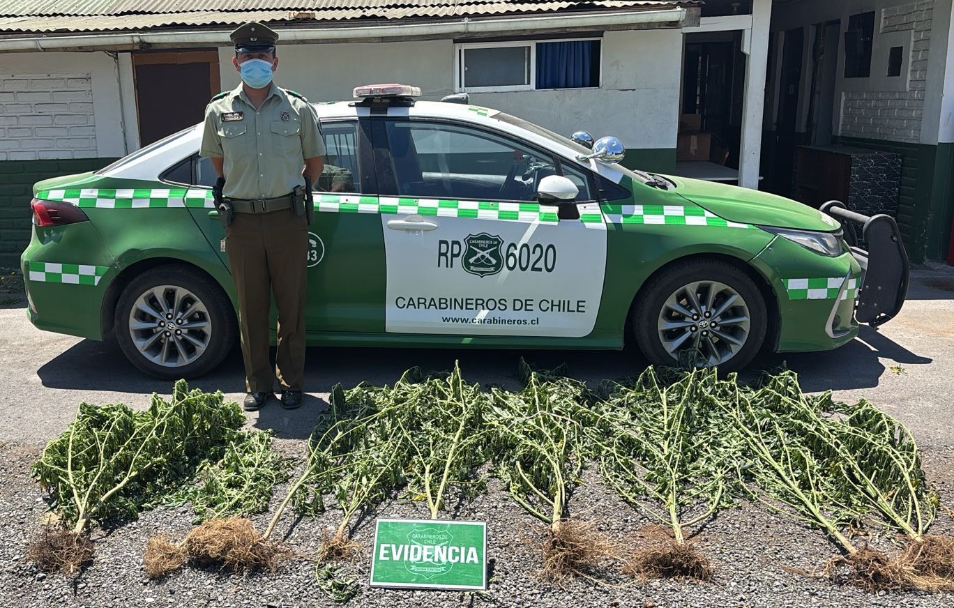Durante la diligencia, Carabineros encontró un total de 10 plantas de cannabis sativa, con una altura aproximada que fluctuaba entre los 70 centímetros y 1,60 metros, procediendo a la detención de ambas personas por infracción a la Ley 20.000.