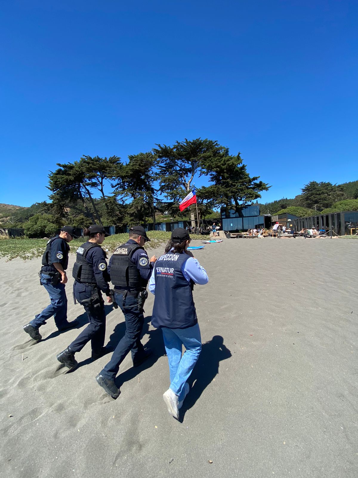 El Capitán de Puerto de Pichilemu, Capitan de Corbeta LT Felipe Vergara Ruiz, señala que “Como Policía Marítima, nuestro compromiso es asegurar que la práctica deportiva en el mar sea segura. Esta fiscalización conjunta con Sernatur nos permite verificar que las escuelas de surf no solo cuenten con instructores capacitados, sino también con los permisos vigentes y los elementos de seguridad necesarios. Queremos que el deporte crezca, pero siempre bajo el marco de la Ley y la responsabilidad, garantizando que quienes contratan estos servicios lo hagan en lugares autorizados”.