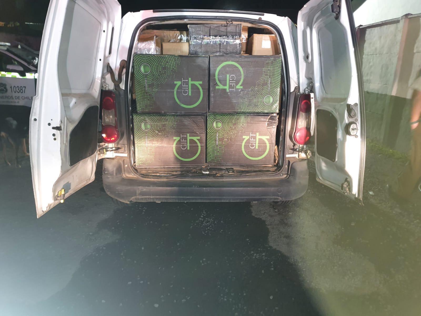 Al fiscalizarlo, los funcionarios detectaron a simple vista cajas de cigarrillos en el asiento del acompañante, lo que derivó en una revisión más exhaustiva del vehículo. En el interior del furgón se encontraron un total de 15.000 cajetillas de distintas marcas: 5.500 de marca Gift; 5.500 Fox y 4.500 Carnival, todas de contrabando.