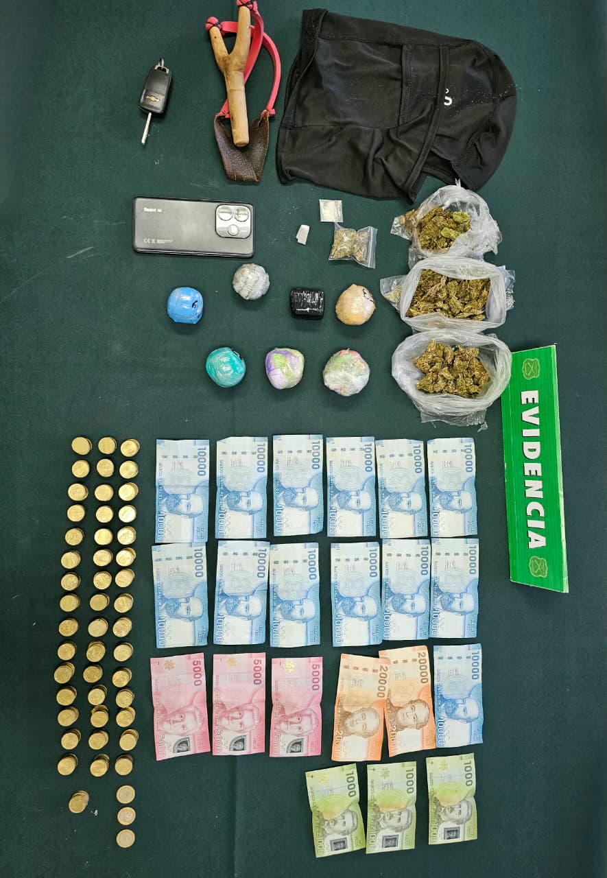 En el contexto de la persecución con inteligencia de los delitos, Carabineros de la 2° Comisaría Graneros logró la detención de dos sujetos que en el interior de su vehículo mantenían diferentes tipos de drogas en forma de “balón”, y diferentes elementos, como resorteras.