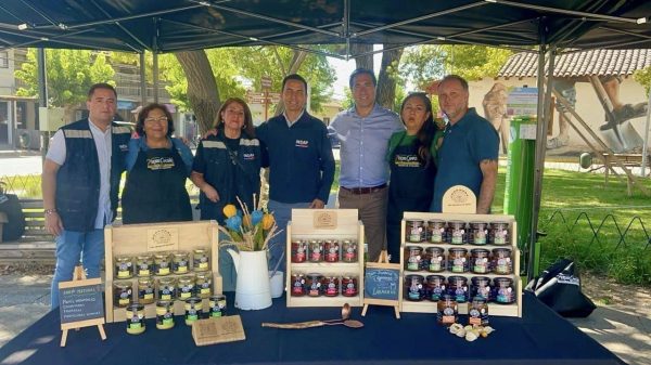 Alcalde Marcos Fuentes y director regional de INDAP, Braulio Moreno, inauguraron este espacio de comercialización para las y los pequeños productores agrícolas de esa...