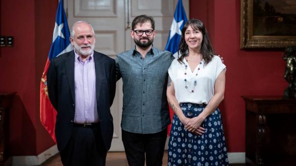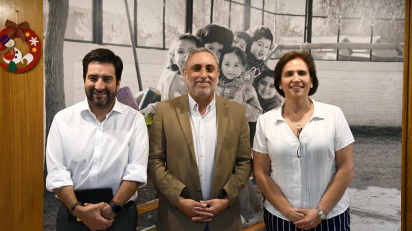El subsecretario de Educación, Gabriel Bosque; junto a la presidenta de la Asociación Chilena de Municipalidades (ACHM) y alcaldesa de Peñalolén, Carolina Leitao; el...